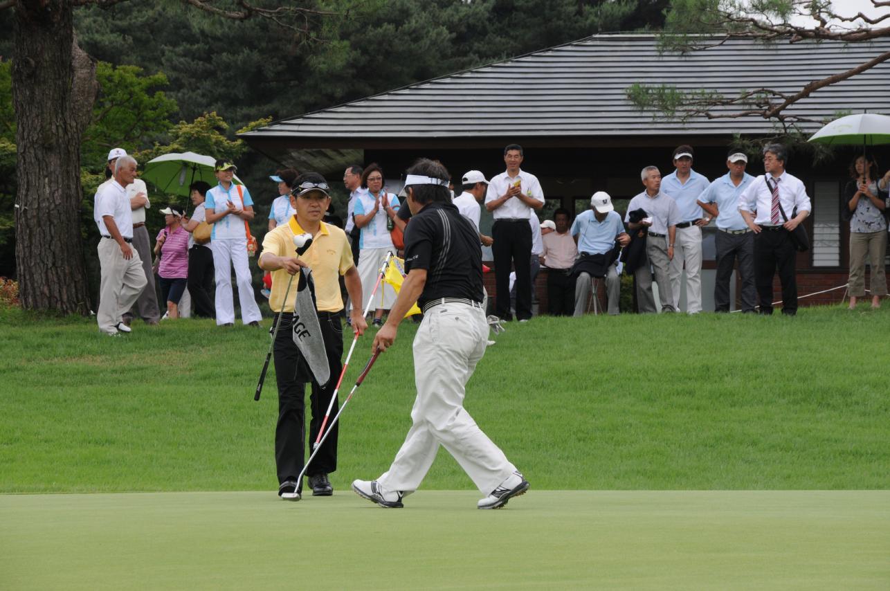最優秀選手に71(—1)で阪田哲男(袖ヶ浦)、秋元一男(相模原)、金浩延(宇都宮)の3人。